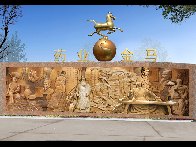 金馬藥業(yè)大門銅浮雕墻設(shè)計(jì)方案