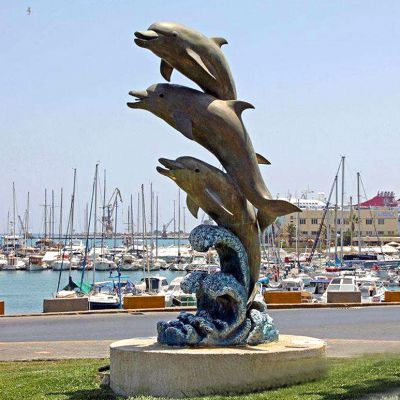 產(chǎn)品標(biāo)題 | 花園三只抽象不銹鋼海豚雕塑 |